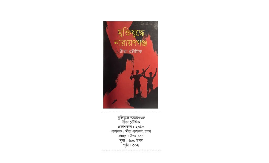 সকলেই জানেন ১৯৭১ সালের ২৫ মার্চ শুধু ঢাকায় গণহত্যা পাকিস্তানিরা শুরু করেনি। ঘটে নারায়ণগঞ্জেও। ওইদিনই নারায়ণগঞ্জে সাধারণ মানুষ প্রতিরোধ শুরু করে। সাধারণ মানুষ বুঝে নেয়―আর পেছনে ফেরার কোনও সুযোগ নেই। সবকিছু বিচ্ছিন্ন করা, ও ব্যারিকেড তৈরির চেষ্টা করা হয়। রীতা ভৌমিকের লেখার বিবরণেও সেসব রয়েছে। স্বাধীনতার ঘোষণা হওয়ার আগেই পাকিস্তানি সেনাবাহিনী নারায়ণগঞ্জে প্রবেশ ও গণহত্যা শুরু করে। লেখক বিবরণে জানাচ্ছেন, ‘পাকসেনারা ২৬ মার্চ শ্যামপুর, পাগলা হয়ে ফতুল্লা প্রবেশ করে গুলিবর্ষণ করতে করতে। সারা রাস্তায় পড়ে রইল অগণিত লাশ। মাগরিবের নামাজের আগে হানাদাররা পাকিস্তান ন্যাশনাল অয়েল মিলে (বর্তমান যমুনা অয়েল মিল) আক্রমণ করে। … নারায়ণগঞ্জবাসী রাজারবাগ পুলিশ দফতর আক্রমণের সংবাদ ওয়ারলেসের মাধ্যমে নারায়ণগঞ্জ থানা থেকে পাওয়া মাত্রই প্রতিরোধ গড়ে তুলতে দৃঢ় প্রতিজ্ঞাবদ্ধ হয়। ছাত্র সংগ্রাম পরিষদের কর্মীরা ২ নং রেলগেটের সামনে দাঁড়িয়ে মর্টারের সেলের শব্দ আর অগ্নিশিখা প্রজ¦লিত হতে দেখে। জাতীয় সংসদ সদস্য এ. কে. এম. শামসুজ্জোহা, এম.পি. আফজাল হোসেন, এম.পি. গোলাম মোর্শেদ ফারুকীসহ আরও কয়েকজন নেতা বঙ্গবন্ধুর সঙ্গে সাক্ষাৎ করে খবর আনেন পাকবাহিনীরা রাতেই আক্রমণ করবে। নদীবন্দর এলাকার নৌযানগুলোকে দূরে সরিয়ে রাখতে হবে।’ [পৃ ১০৬-১০৭]