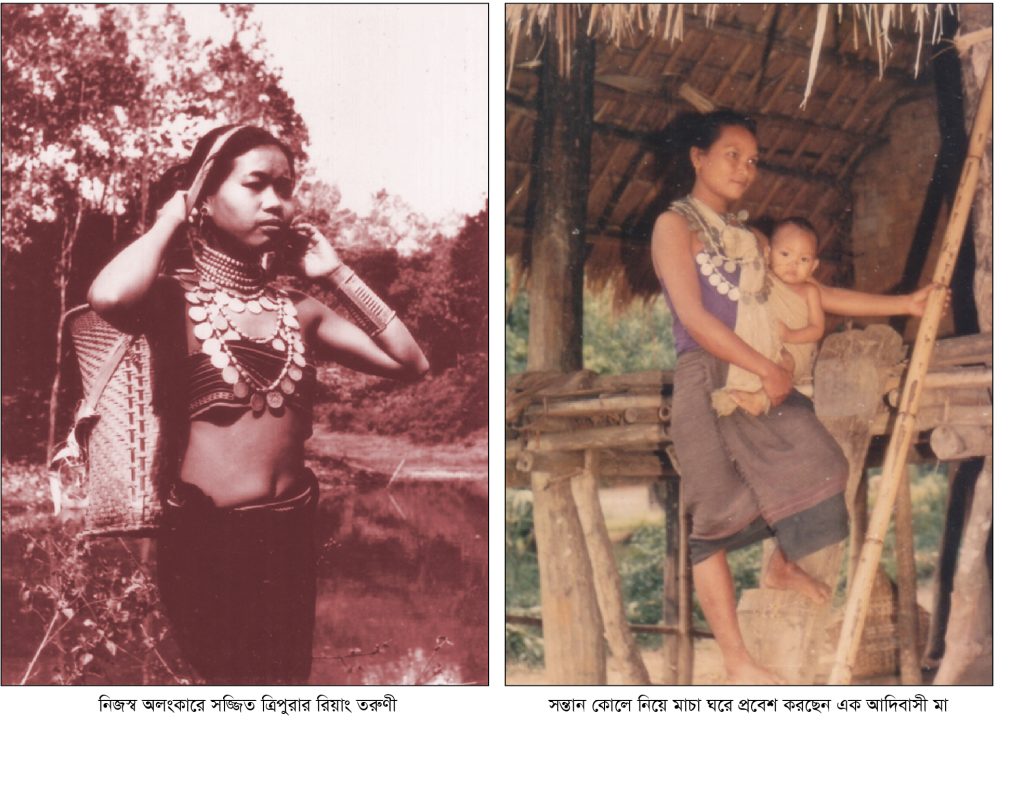 বাজার জমে ওঠেনি। লোকজন এসেছে। গ্রামের সাধারণ মানুষ। মেয়ে মানুষও। পোশাকে দারিদ্র্যের ছাপ থাকলেও তা আড়াল হয়ে চোখে পড়ে বৈচিত্র্য। ত্রিপুরী, রিয়াং, হালাং, ডারলং। মেয়েদের পরনে লুঙ্গির মত করে পরা নিজেদের তাঁতে বোনা নকশা করা কাপড়। প্রায় একই ধরনের কিন্তু উপজাতি ভেদে নাম ভিন্ন। ত্রিপুরীদের পাছড়া, রিয়াংদের কাছে যা হালামদের কাছে তার নাম নিকলি আমদুখ। গায়ে ব্লাউজ। কারও বা কাপড়ের বক্ষবন্ধনী। ত্রিপুরীরা যাকে বলে রিসা, রিয়াংরা রেসা এবং হালামরা কুলটাই। রিয়াং মেয়েদের গা ভর্তি গহনা। রঙিন কাচ, পুঁতি, পাথর ও রুপার অলংকার ‘রাংবতাং। বাজার করতে আসা মেয়েদের পিঠে ঝুড়িÑ গাছের বাকল দিয়ে মাথার সঙ্গে ঝোলানো। ঝুড়িতে আনাজ নয়তো মুরগি।