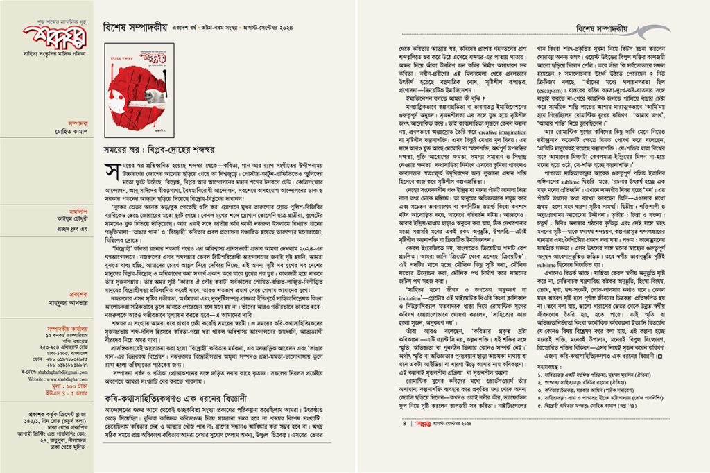 বিশেষ সম্পাদকীয় : সময়ের স্বর : বিপ্লব-দ্রোহের শব্দস্বর